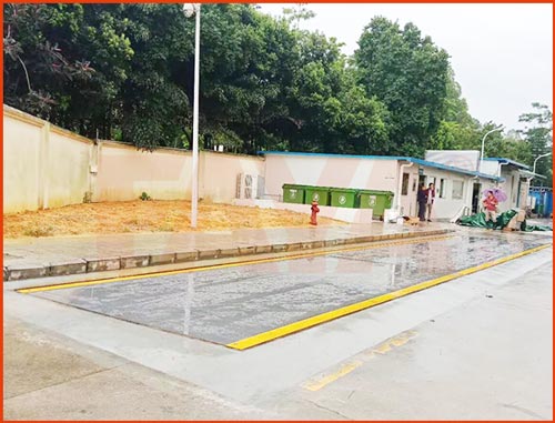 先进微电子地磅项目施工案例,此想用采用常见的浅坑基安装方式,实拍效果图如下: